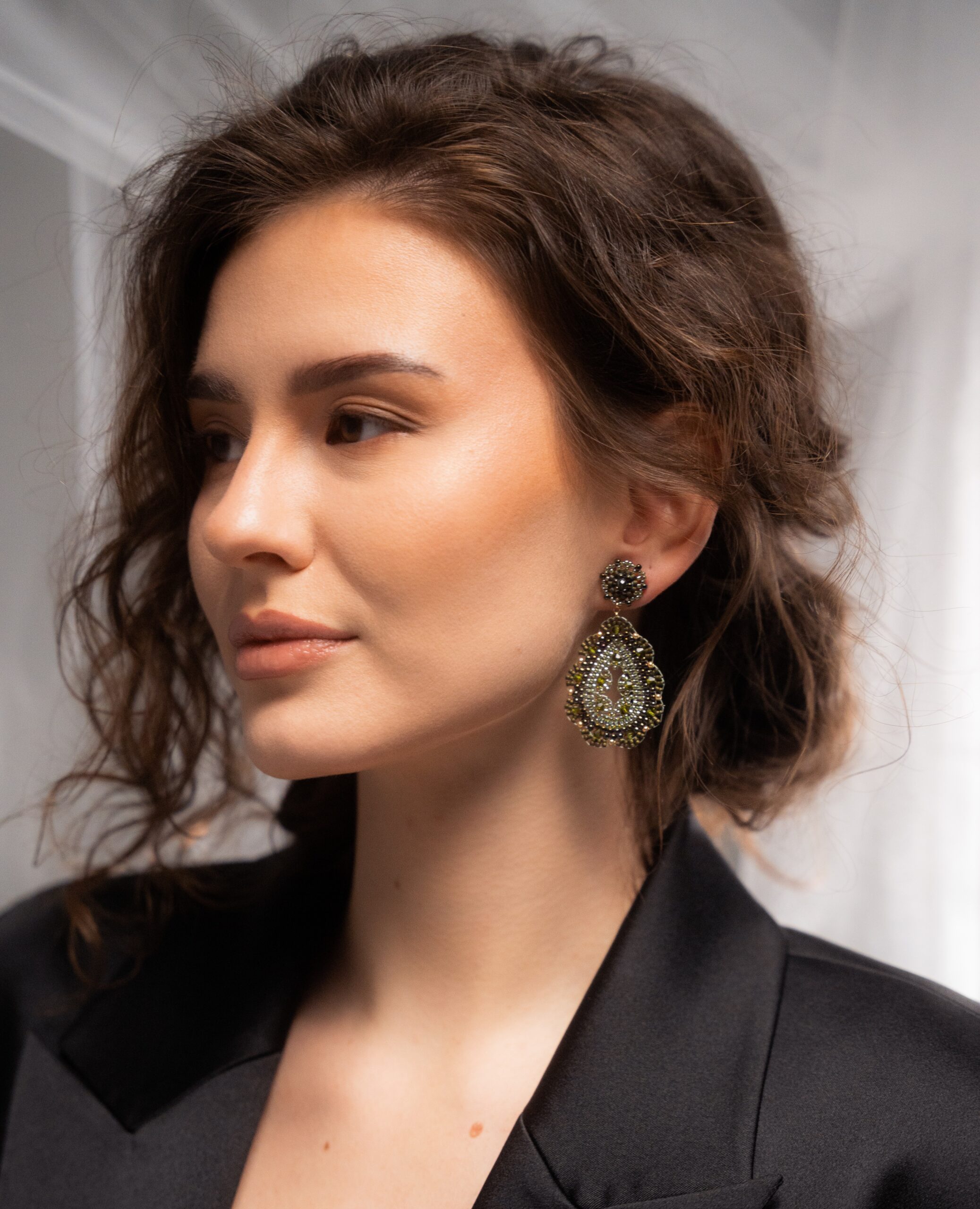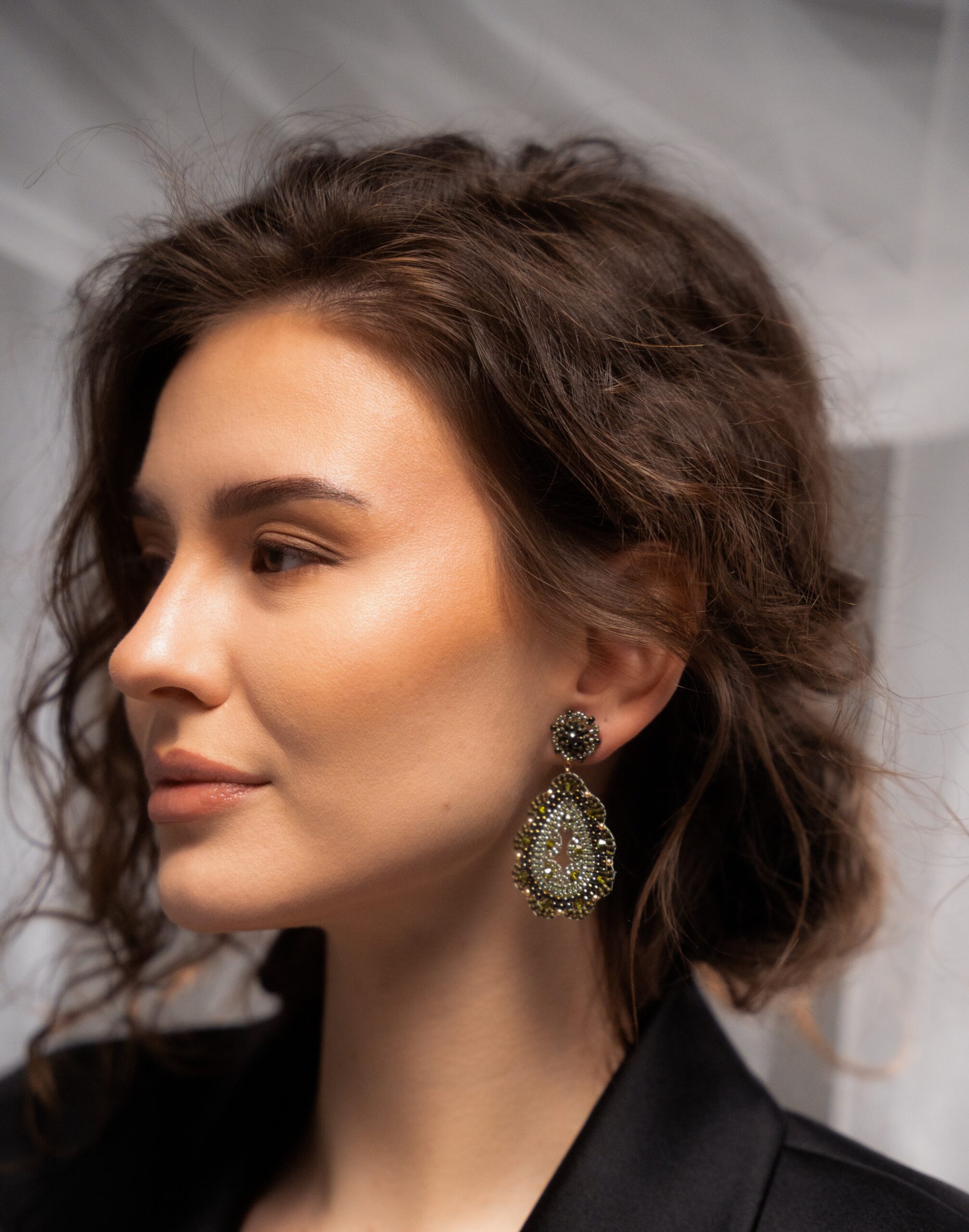 Ušité z najkvalitnejších sklenených korálok Miyuki a Preciosa kryštálov, ktoré dodávajú náušniciam punc luxusu a nekonečný lesk.